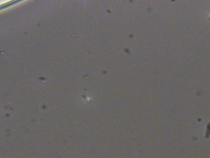 1日使いきりのコンタクトレンズはこんなに汚れているんです。 そのコンタクトレンズの洗浄液を位相差顕微鏡「P-Scope」で見てみると・・・